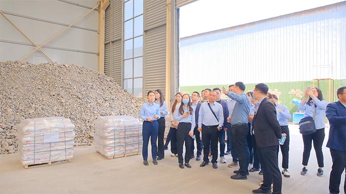 秦經(jīng)理在為大家講解隨后,大家來到不定形耐火材料生產(chǎn)基地,生產(chǎn)部秦亞濤帶領(lǐng)大家參觀了不定形耐火材料生產(chǎn)線,為大家耐心講解了全自動化不定形耐火材料的生產(chǎn)過程,并對不定形耐火澆注料與可塑料的原料采購、碎石分級、配比、分裝等生產(chǎn)環(huán)節(jié)進(jìn)行一一介紹。忙碌有序的生產(chǎn)現(xiàn)場令新員工們對主要產(chǎn)品的原料、工藝、流程等方面也有了更直觀、更全面的認(rèn)識與了解。