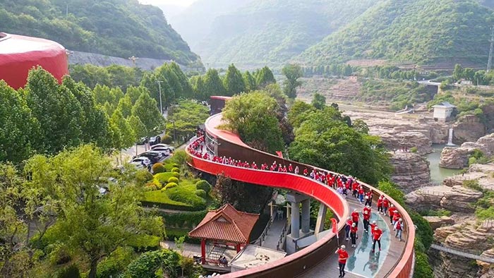 4月29日清晨,迎著山間的朝露與鳥鳴,全體學(xué)員前往太行山大峽谷,開展了一場(chǎng)別開生面的觀摩教學(xué)。行走在巍巍太行山間,在桃花谷、太行天路中,感受“美太行”的美麗鄉(xiāng)村建設(shè)的新時(shí)代畫卷,探訪山區(qū)人民自力更生、艱苦創(chuàng)業(yè)的致富精神。