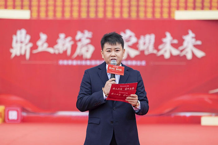 zui后,在熱情洋溢的現(xiàn)場(chǎng)氛圍中,河南榮盛科技集團(tuán)董事長(zhǎng)楚科奇發(fā)布了致辭。他首先代表集團(tuán)向蒞臨現(xiàn)場(chǎng)的各位領(lǐng)導(dǎo)、嘉賓及全體員工表示熱烈歡迎與誠(chéng)摯感謝。楚總回顧了集團(tuán)十二年的發(fā)展歷程,指出新材料生產(chǎn)基地的建成,凝聚了全體榮盛人的智慧、汗水與堅(jiān)守,是企業(yè)十二年奮斗征程上的重要里程碑,更是企業(yè)面向未來、決勝未來的戰(zhàn)略新起點(diǎn)。楚總強(qiáng)調(diào),新工廠的順利落成,得益于各級(jí)主管部門的大力支持與服務(wù),也離不開集團(tuán)管理層的協(xié)同與一線團(tuán)隊(duì)的奮力拼搏。他特別感謝了王海軍總經(jīng)理及集團(tuán)管理層,稱贊其在項(xiàng)目戰(zhàn)略定位與資源配置中發(fā)揮的關(guān)鍵作用;同時(shí),他也向宋廣林總經(jīng)理及全體建設(shè)者致敬,感謝他們不畏艱辛、全力以赴,將一片荒蕪之地打造為現(xiàn)代化智能工廠。