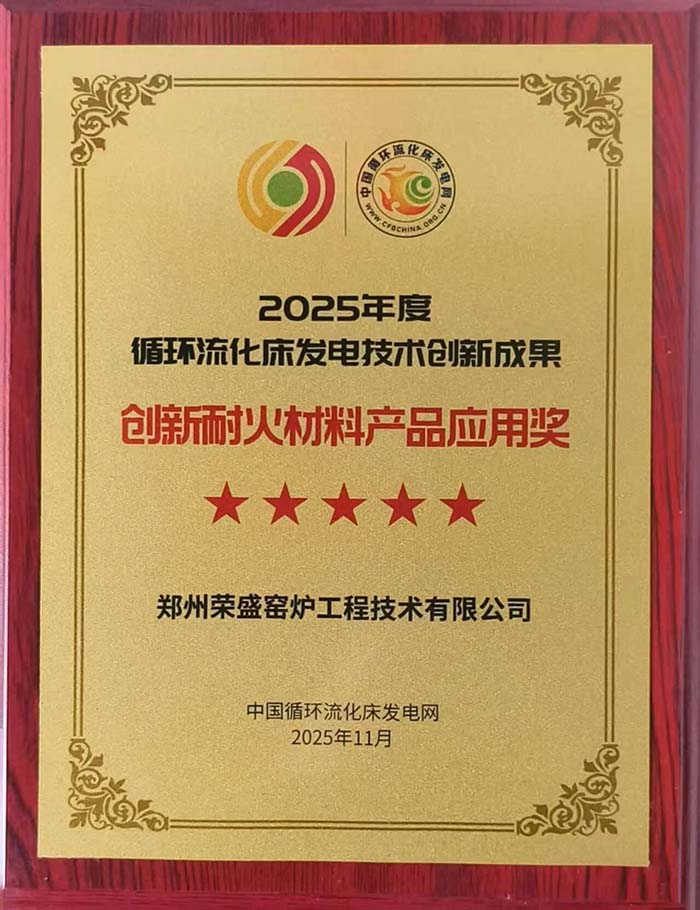 熱烈祝賀鄭州榮盛窯爐工程技術有限公司榮獲2025年度循環(huán)流化床發(fā)電技術“創(chuàng)新耐火材料產(chǎn)品應用獎”!