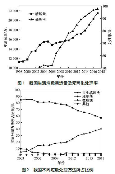 城市垃圾的無害化、減容化已成為政府和公眾非常關心的問題。隨著我國經濟的迅速發(fā)展和人口不斷向城市集中,城市化進程加快且數量和規(guī)模不斷擴大,城市生活垃圾總量持續(xù)增多。近十幾年來,我國城市垃圾無害化處理從無到有,無害化處理率也在逐年增長(見圖1)。