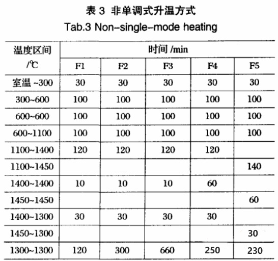 由以上分析可以看出,非單調(diào)式升溫方法有可能在耗時更短、耗能更小的情況下達(dá)到更高的莫來石轉(zhuǎn)化率。而采用非單調(diào)升溫方式處理后的合成料在顯微結(jié)構(gòu)上及其他性能特點(diǎn)上有何獨(dú)特之處值得后續(xù)工作進(jìn)行深入研究。